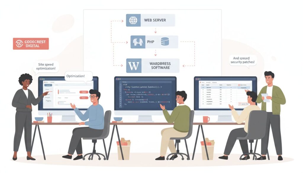 Each component plays a critical role in website functionality. The web server handles incoming requests, PHP processes dynamic content, MySQL manages data storage and retrieval, and WordPress orchestrates the entire user experience. Explore more about WordPress page builders and themes to understand how these components interact.